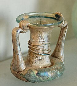 Миниатюрный двуручный стеклянный фиал из Сирии, IV в. Высота 4,7 см, диаметр 4 смА вигилия — это смена ночной стражи в городах. Раньше говорили: «Между третьей и четвертой стражей».
